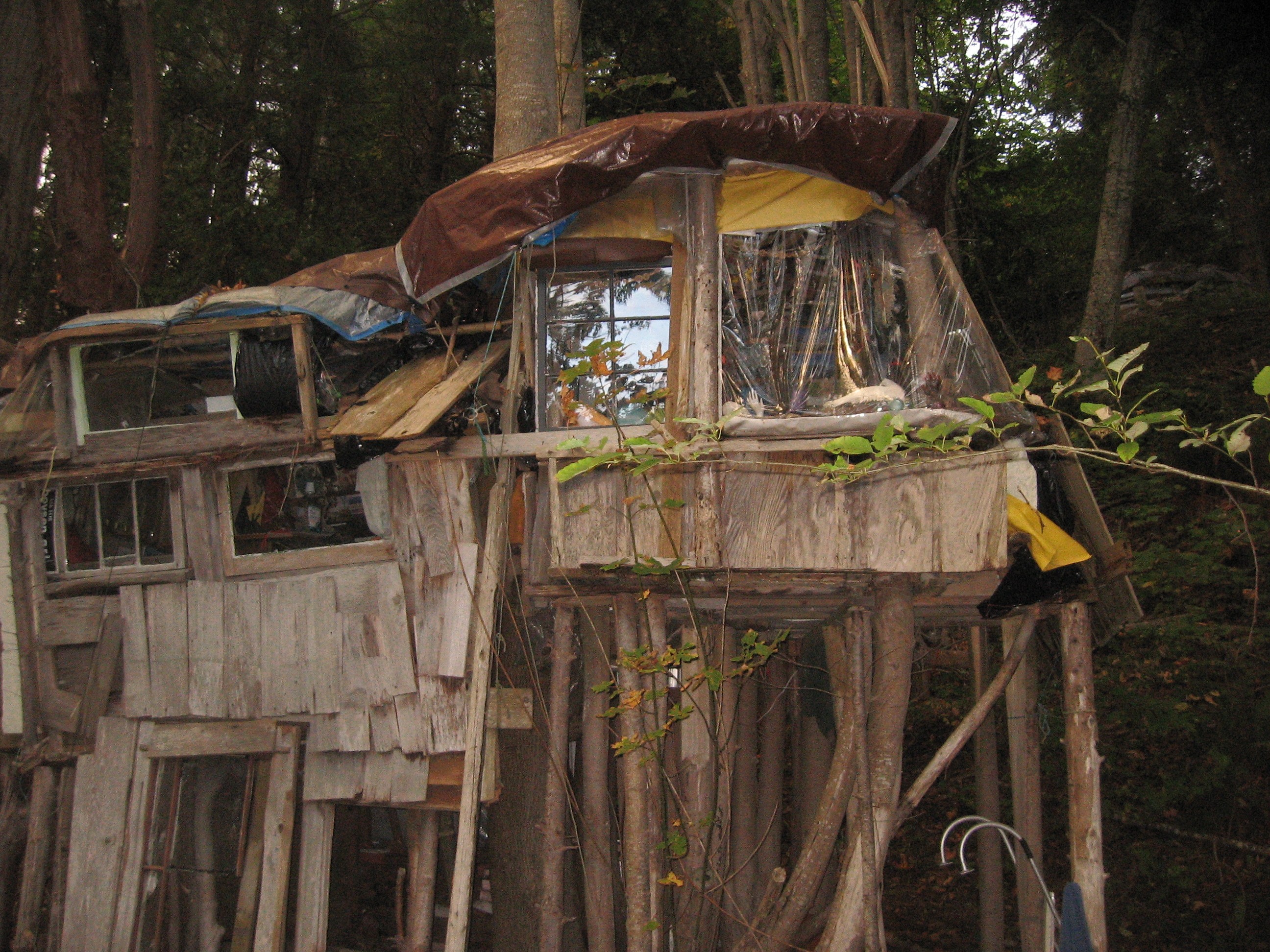 “The other thing that I think is weird is that everyone has hiked or camped at some time in their lives, or been on a canoe trip or sailed. Nobody thinks one thing about those backcountry experiences (as) being not hygienic or too-bare bones to nature. Most often, the memories are among the best of their whole lifetime. They remember that it was pristine and healthy, relaxing and stimulating, and settling for the soul all at once. If I had such as my treehouse, dome and cannibal-tub somewhere in the backcountry, it would be a highly revered trail shelter and thought to be extremely luxurious. In most third-world countries, and for eons of human history, all that I have would seem posh beyond compare for one person to own. I am a basic human who is well adapted to (living in) a tiny tent under a 9’ x 7’ tarp in all weather conditions. My place here on Puget Sound is a Taj Mahal!!