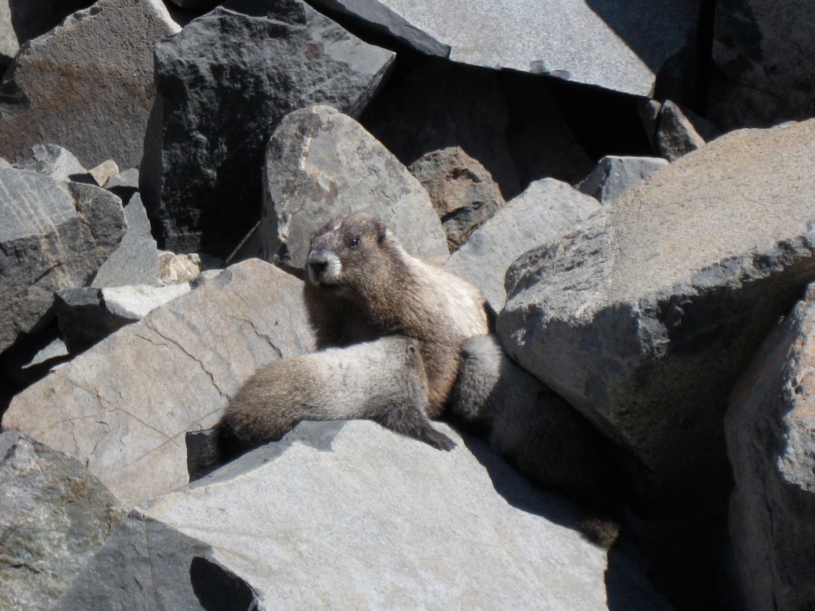 If you enjoy photos of Mount Rainier, here’s a site called Mount Rainier Photos that also contains a lot of valuable information of interest to hikers in the Pacific Northwest. The photographer behind this site is Sally Johnson and in “Sally’s Blog” I found a post about marmots.