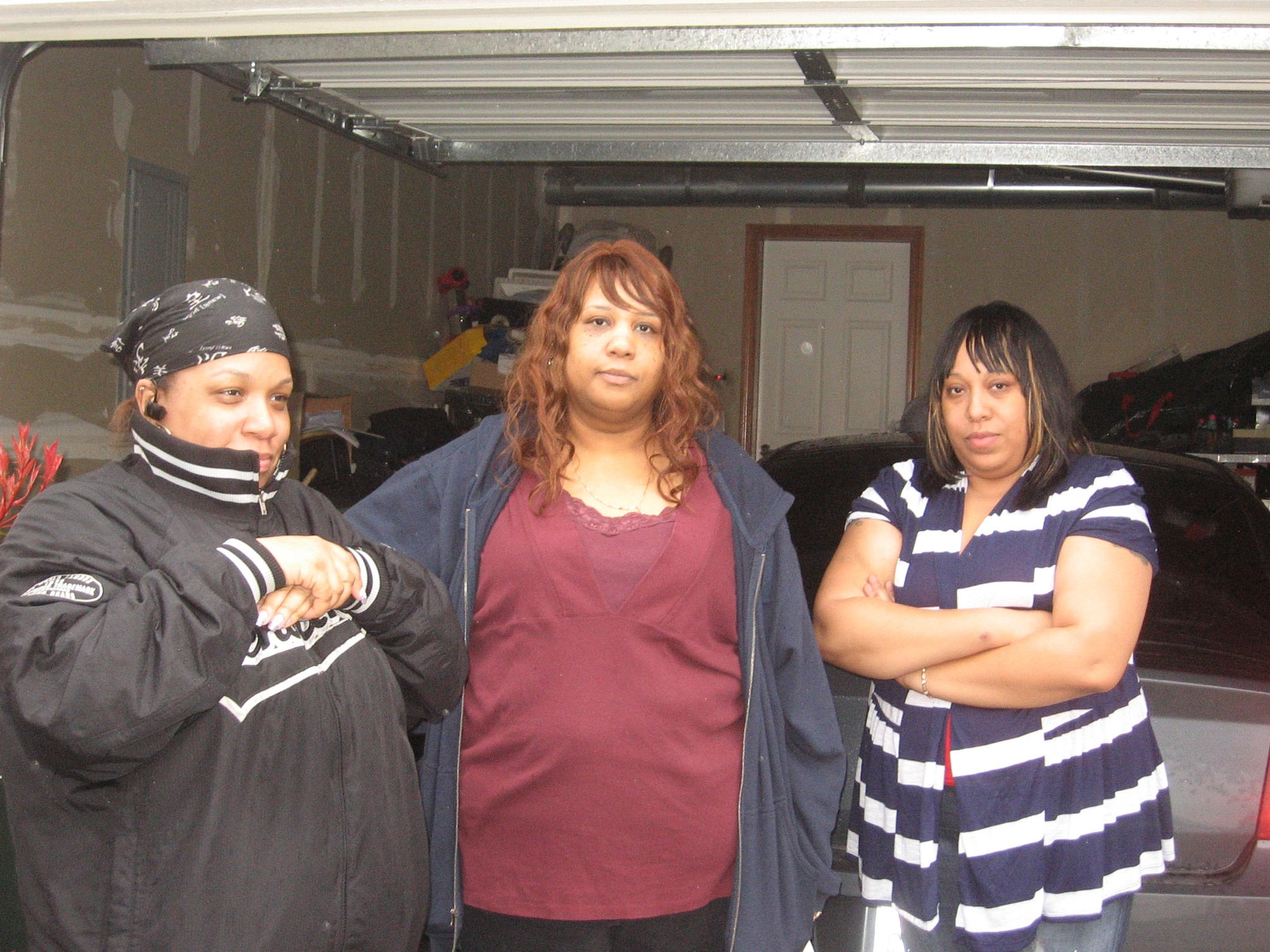 Neighbors Joann Barber-Smith, (l), Sonya F, (m), and Andrea Smith, (r), appeared exhausted by today's events in Spanaway.