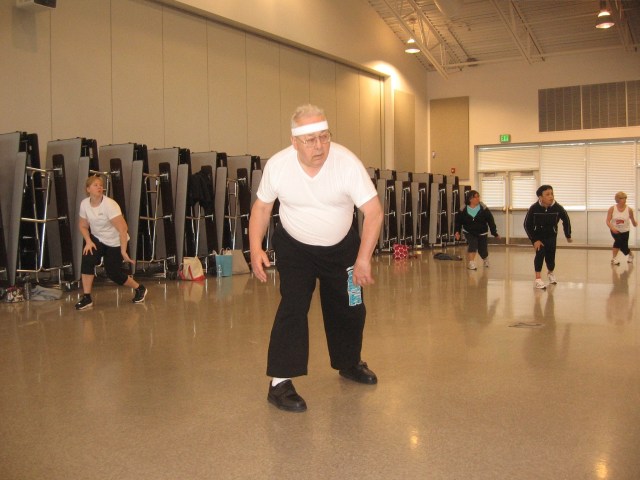 Besides the men, there are about a dozen women in most sessions, and most participants are over 40. Their degree of fitness and amount of excess weight varies greatly, and although encouraged to maintain the energetic pace many participants slow down after a few routines, and they modify their remaining workout to suit their abilities and strengths.