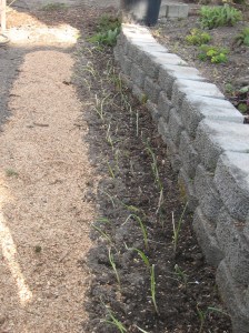 We don’t have a greenhouse to nurse our tomatoes along, but we thought it would be a great idea to plant them against one of the retaining walls as soon as the frosts pass. But then we got to thinking about how much the slugs like hiding between the blocks, and decided to plant our Walla Walla onions there instead. A little Internet research indicated slugs love tomatoes and hate onions, so that should be a good move on our part.