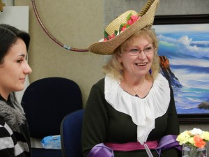 “I am currently working on a mystery book series about a group of women who belong to a club called the “COWS,” or “Crazy Old Women’s Society,” (the equivalent of the Red Hat Club, but for writers). The club is dedicated to solving murder mysteries,” Holmes said seriously. She thought for a moment and then chuckled, saying she’d like to start one here.