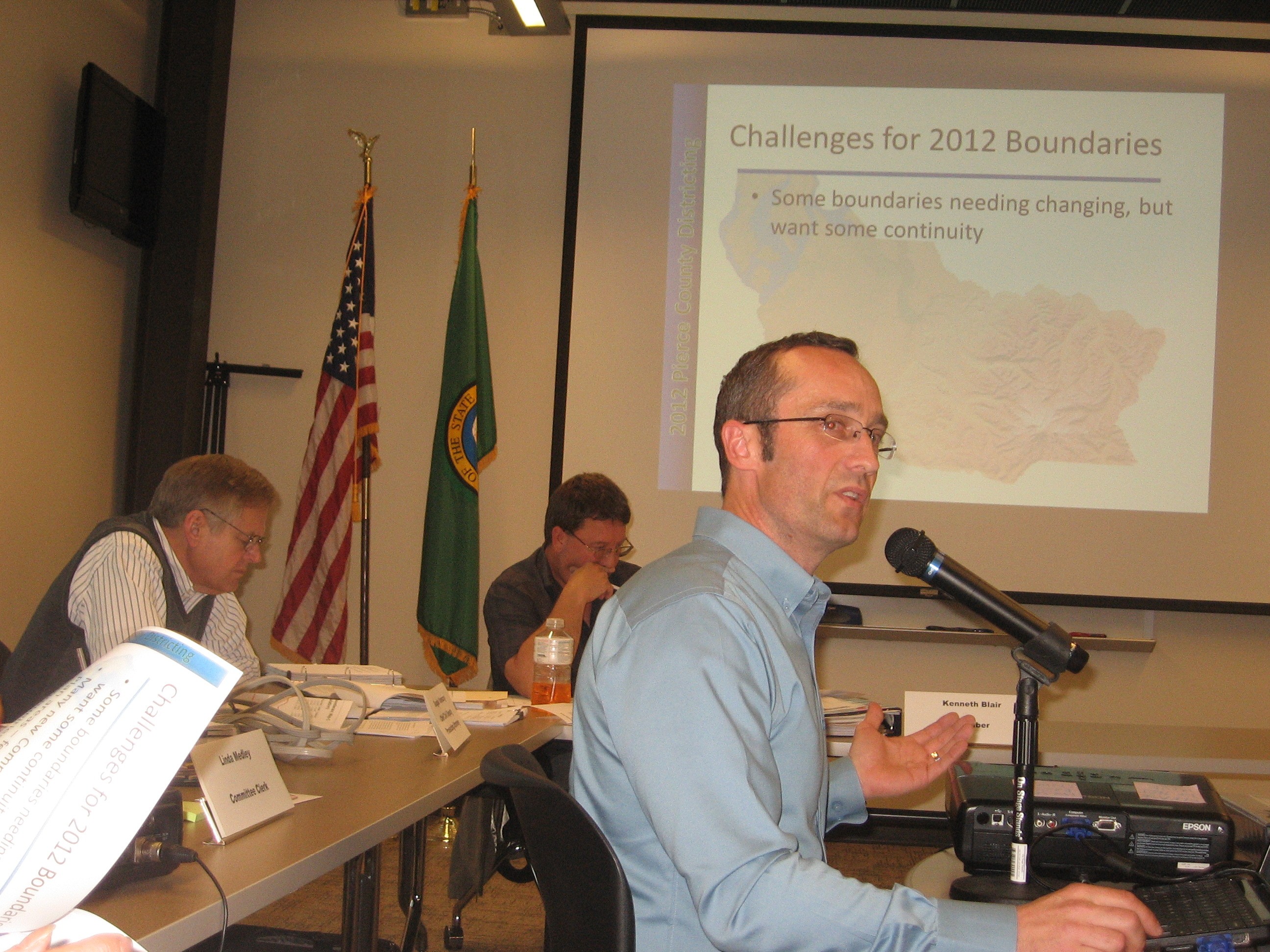 Steven Garrett,, Districting Master, leads discussion at the CMF during a recent public meeting on the redistricting of Pierce County's council district boundaries.