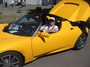 “I just drove it 3,000 miles and it was totally sweet,” said Chad Schwitters, a board member of Plug-In America, an organization that promotes the use of electric cars. In addition to the Roadster, Chad and his crew also presented a Nissan Leaf, which goes for only $32,000, but has just a 100-mile range between recharges.