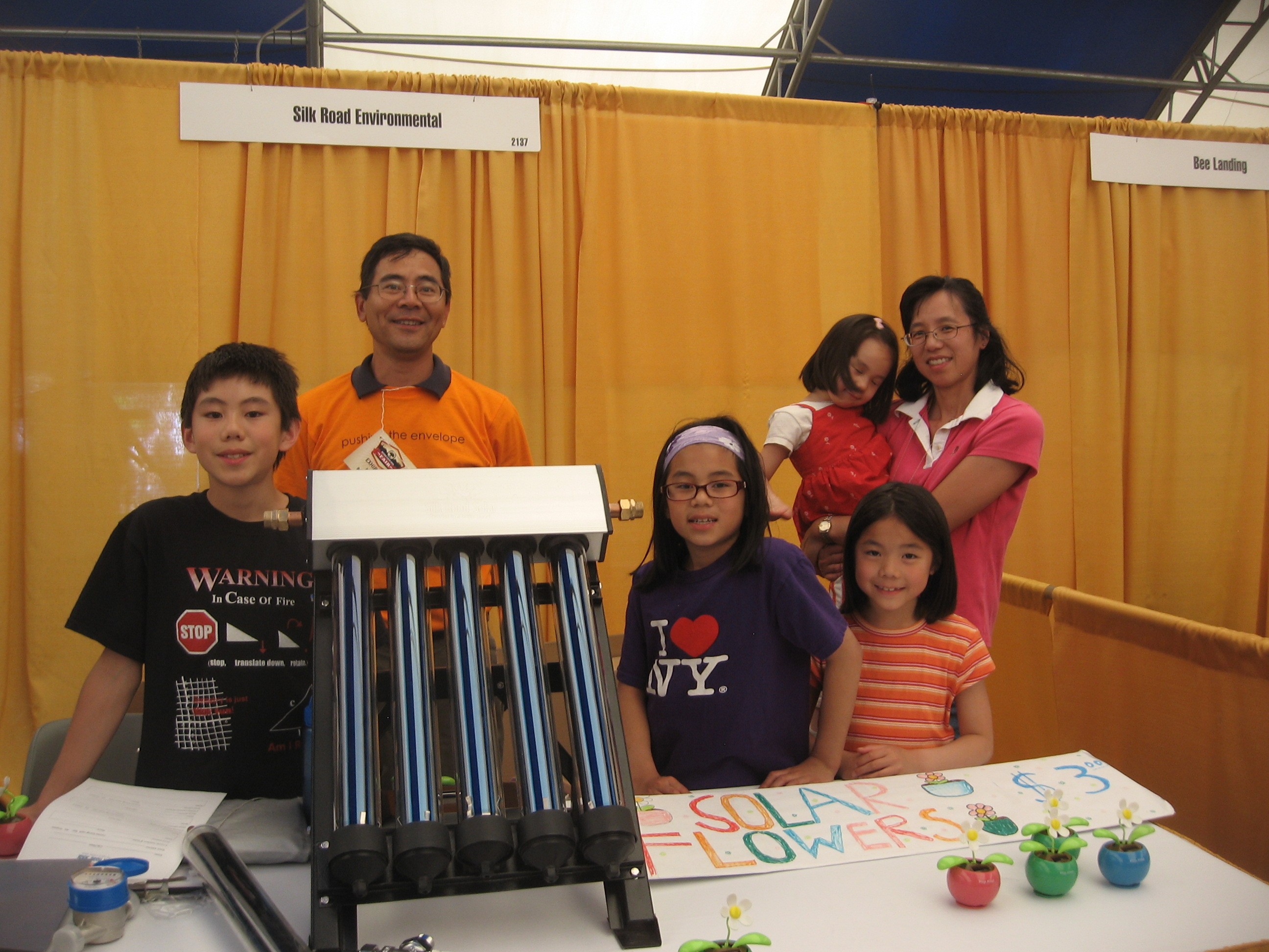 Next to the electric cars were several solar energy companies, showcasing their hot water heaters and photo-voltaic electricity generation systems.