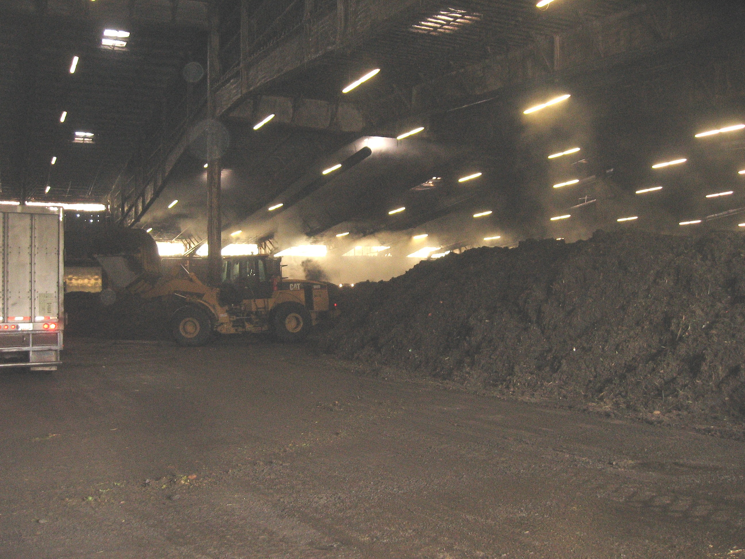 These noxious odors are one reason why the composting facility is a tightly enclosed structure, with vapor barrier doors and a negative air pressure system to keep the fumes contained indoors.