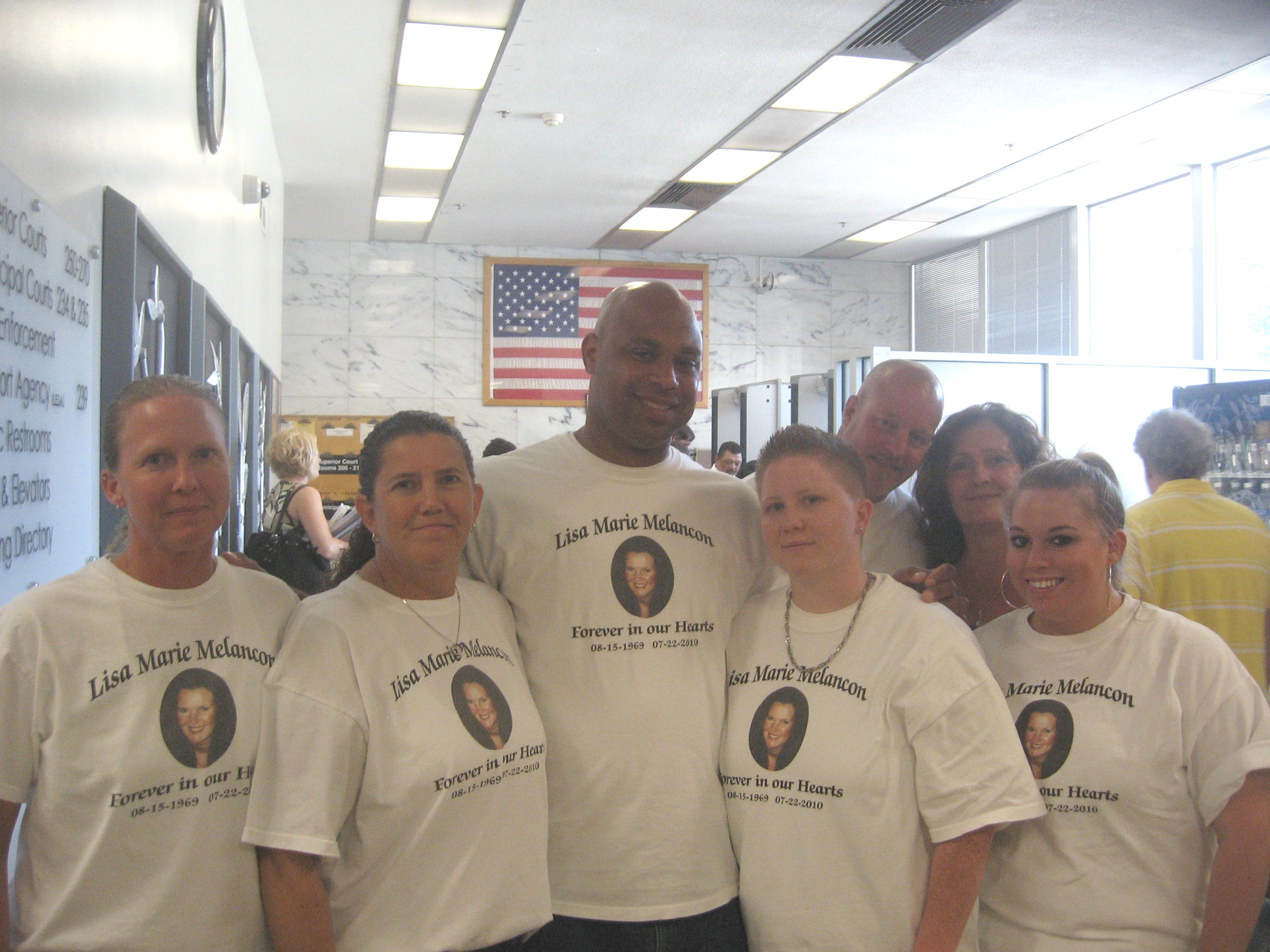 Standing in a circle were about six women looking stern, and wearing matching “T” shirts that said “Lisa Marie Melancon – Forever in our Hearts:  8/15/69– 7/22/10.”