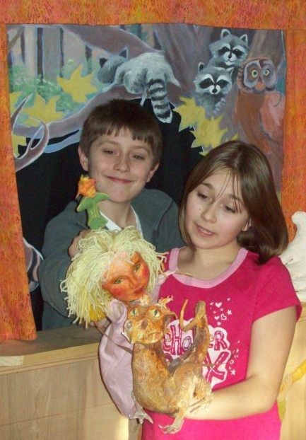 Two enthralled puppeteers, Katherine and Aidan, at a recent performance of the Acorn and Rose Puppet Theater