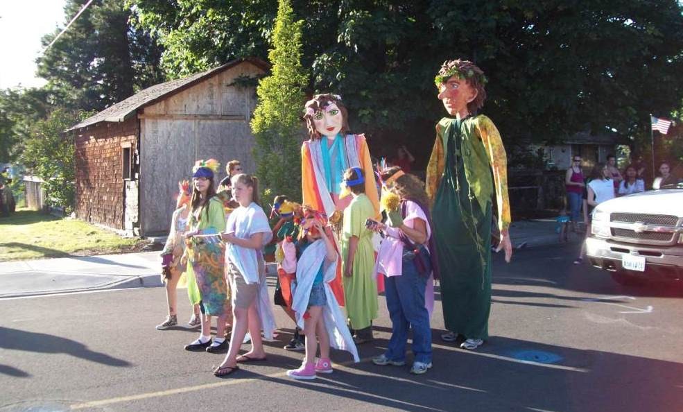 Participants from the Acorn and Rose Puppet Theater parading in Yelm during last year's Prairie Days celebration.