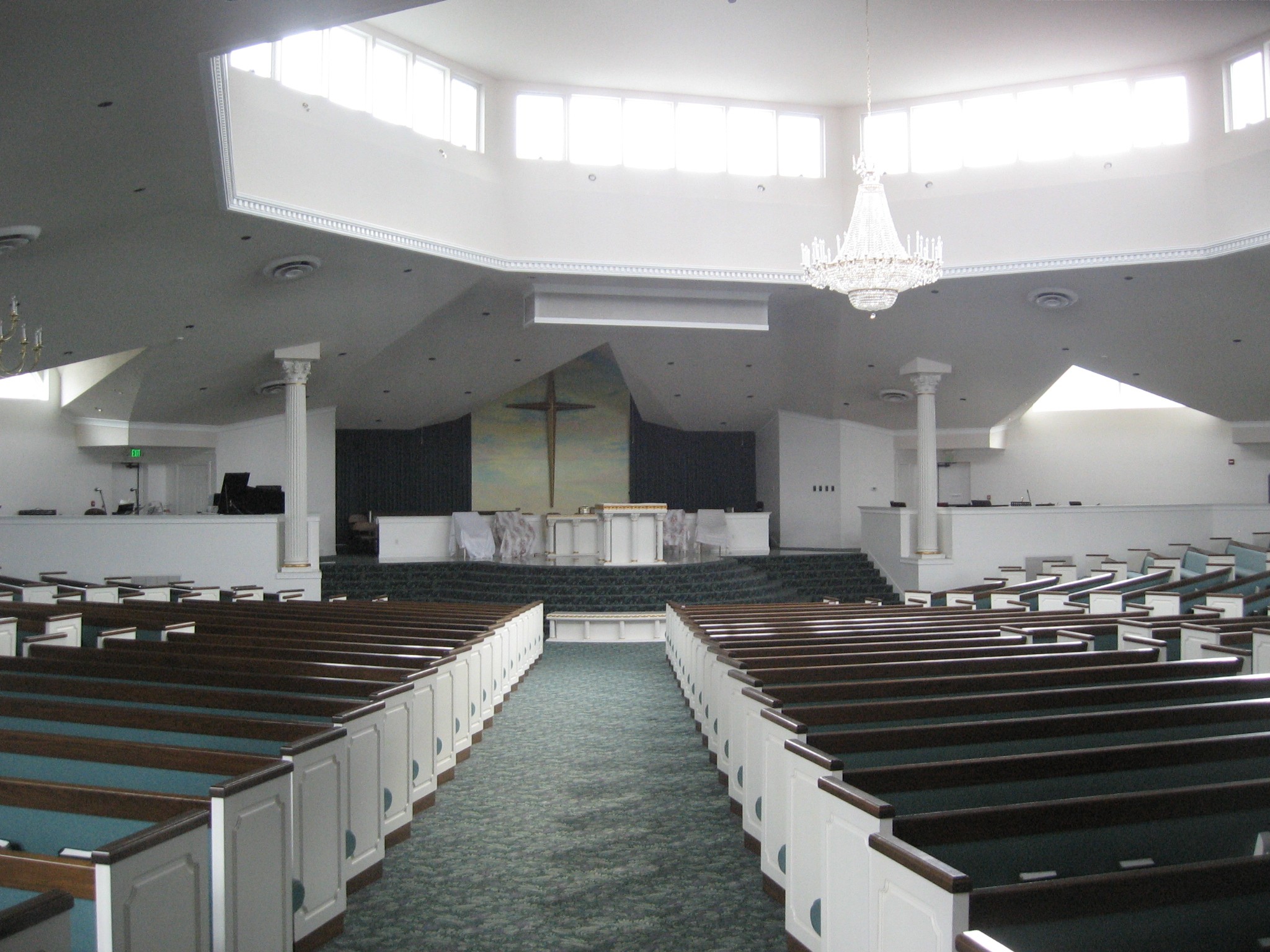 The fence encircles a large religious campus that includes the main chapel easily seen from the O-K Highway, and numerous other structures: a fellowship hall, an educational building that houses adult seminary classrooms and Sunday school facilities, a teen center, a smaller chapel for special events, a library, office center and printing shop, and a nursery.