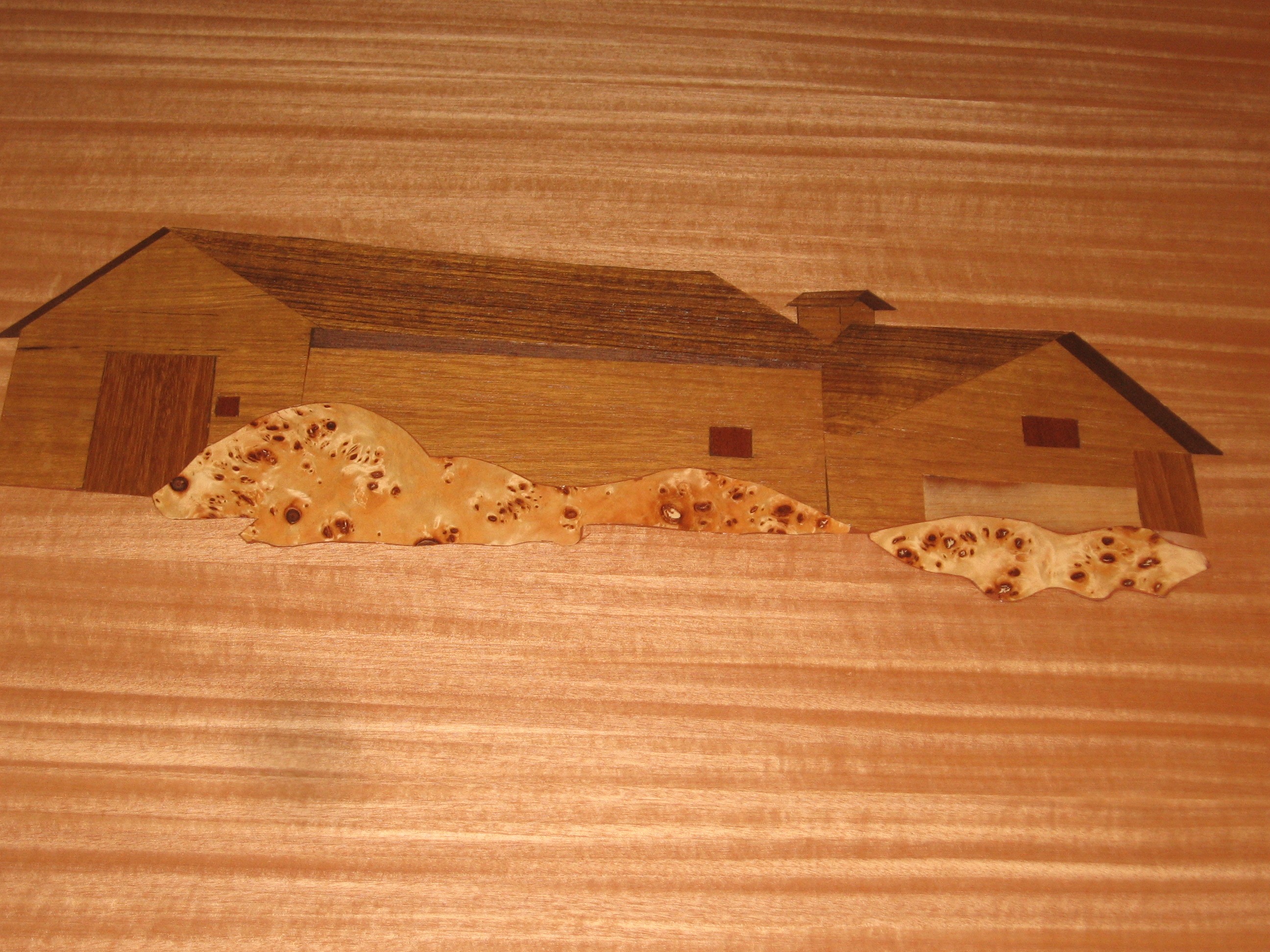 But perhaps the highlights of the evening was the display and bidding for locally crafted art work, especially Mike Goodell’s wooden inlay coffee table that featured a likeness of the main barn at the Mayflower Dairy.