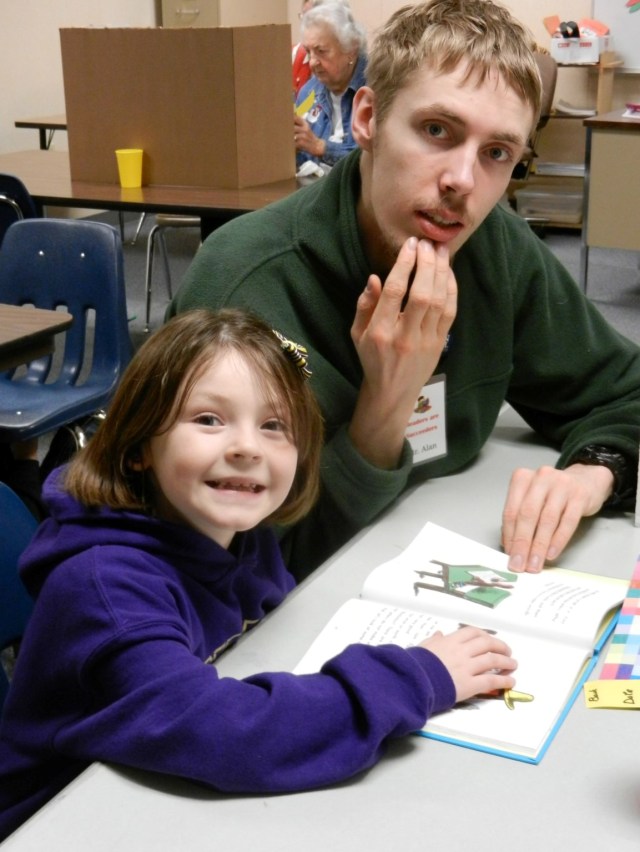 Three years ago, Eldora was inspired to start a similar program in Graham.  She contacted Carol Wright of the Graham-Kapowsin Community Counsel (GKCC) to help her locate a space where she could set it up.  Sloan then wrote and received a grant from the American Baptist Women to launch the Readers Are Succeeders program that meets in Portable 5 every Tuesday at 2:45 p.m.
