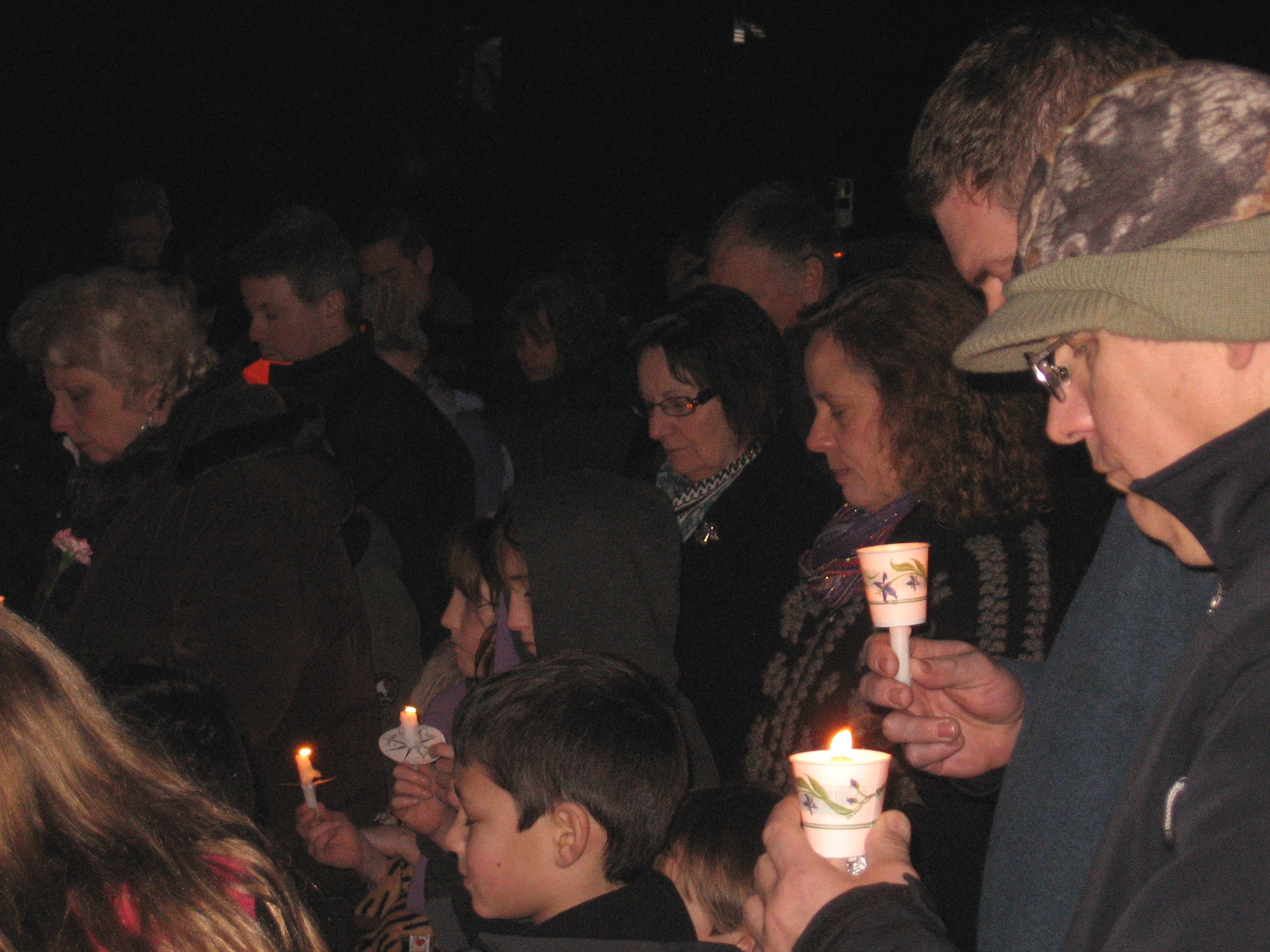 On a little hill east of Eatonville and silhouetted by a rosy sunset on a crystal-clear evening, hundreds gathered Sunday, January 8 to light candles and honor fallen Mount Rainier Ranger Margaret Anderson.