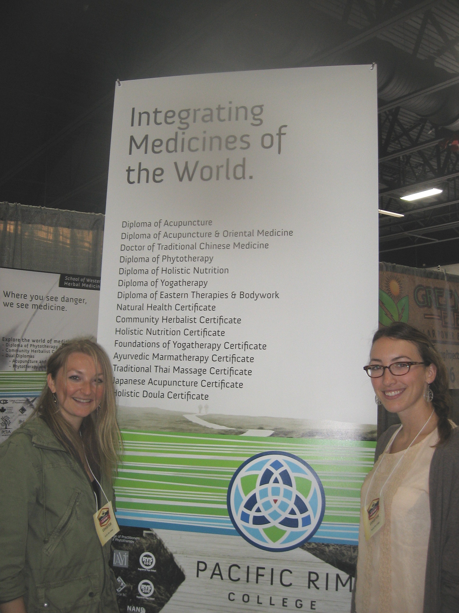 Pacific Rim College representatives Dayley Harper, left, and Lauren Truscott, right, tout the values of their alma mater, whcih speciializes in alternative healing methodology, such as the application of herbal medicines