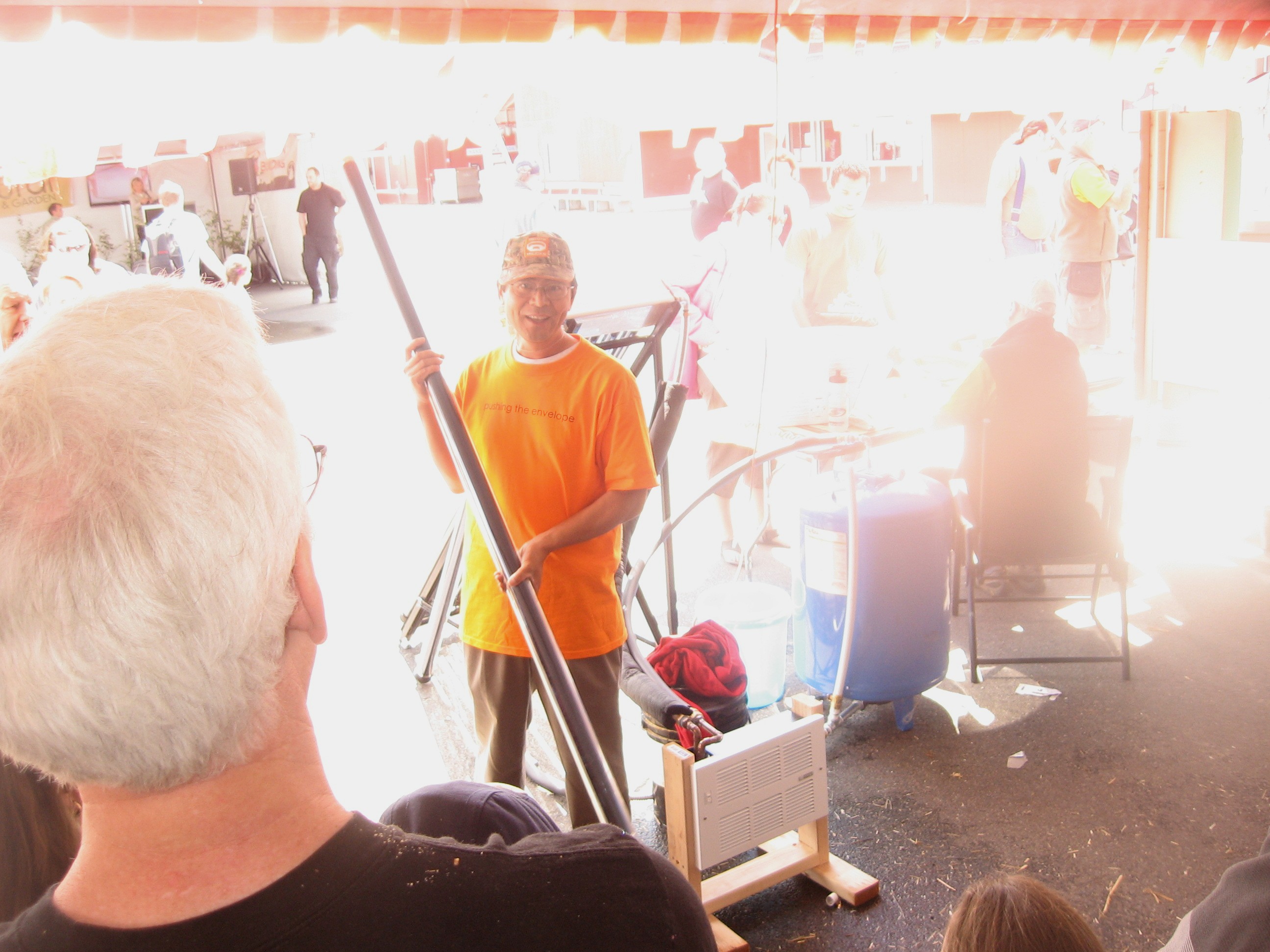 Ray Lam, owner and founder of Silk Road Solar, displaying his latest passive solar hot water heating technology at the Mother Earth News Fair in Puyallup.