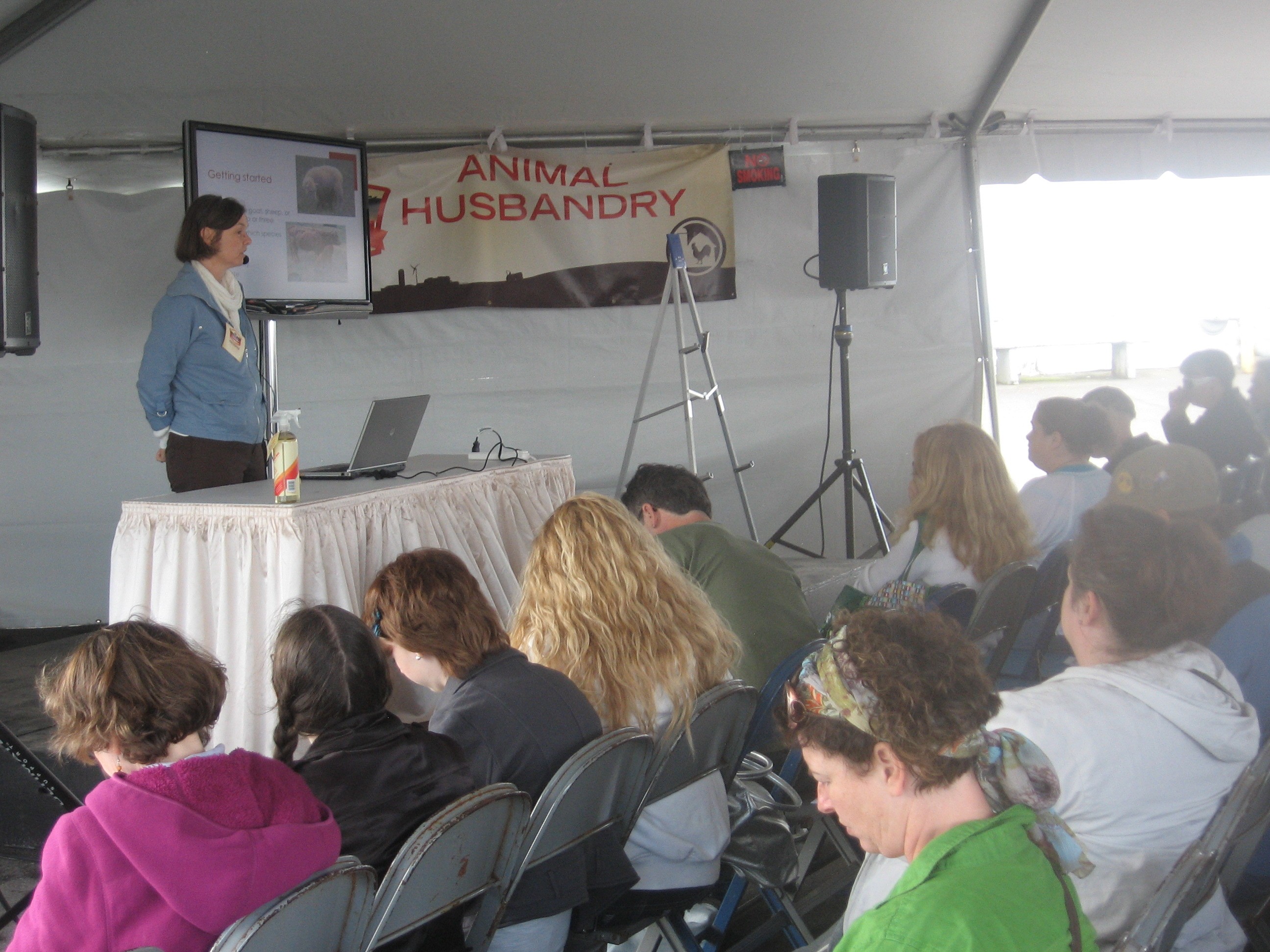 Deborah Niemann speaking on “Traditional Home Dairies,” at the MEN Fair, with over 100 people in her audience