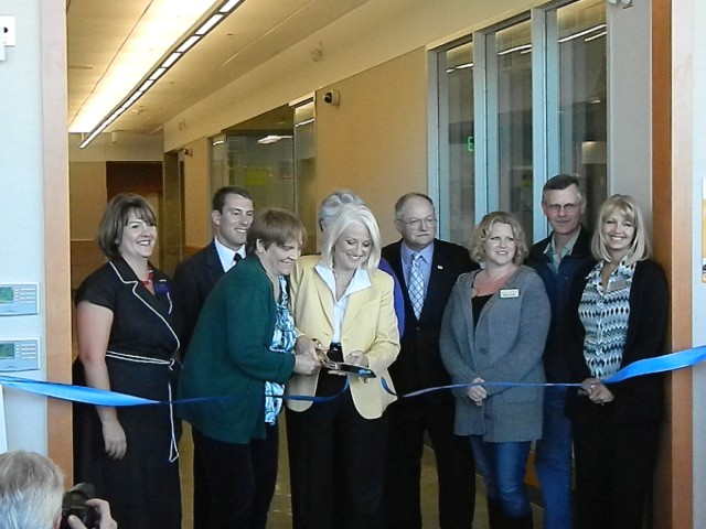 State Senator Randi Becker, center, led a distinguished group of dignitaries at Tuesday’s dedication of the Phase 2 construction of classrooms at the Pierce County Skills Center in Frederickson.