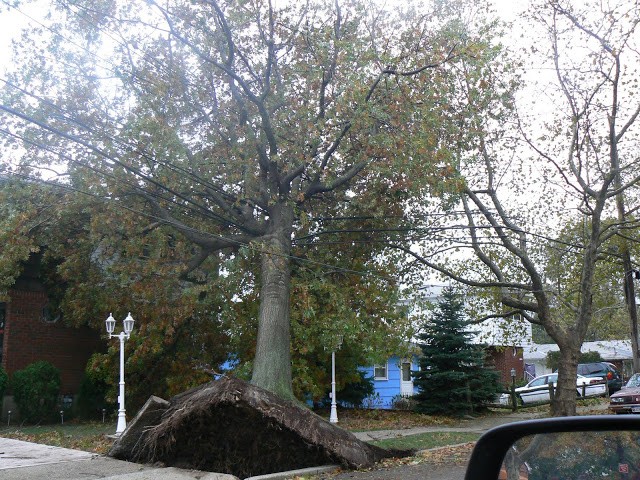 Friend Valerie’s dad in Massapequa, located in the south shore of LI near the flood zone, is okay and got power back a few hours ago. Wow! Valerie’s sister-the-cop, is on duty and sounds harried. Val’s sis apparently had enough time, though, to swing by their father’s and witness her 90-year old pop out on the street with a chain saw taking care o’ business on a downed tree.