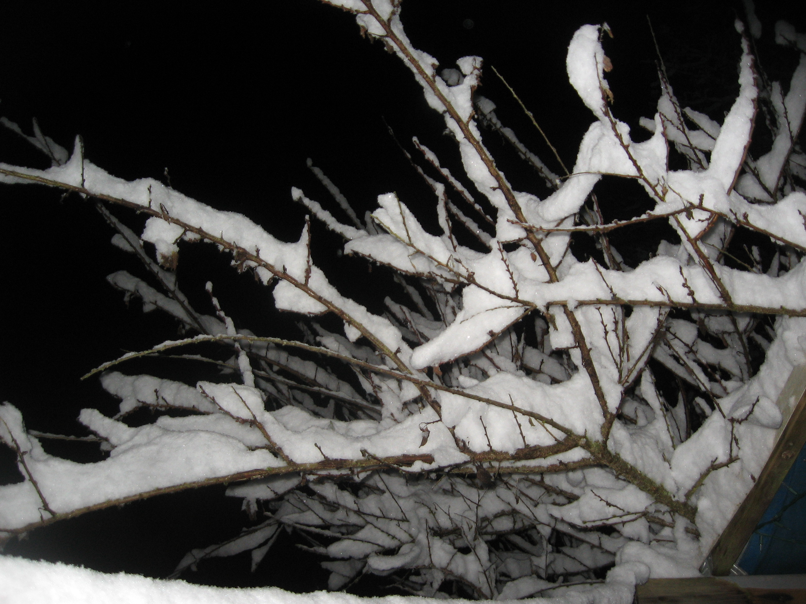 But, the snow fell Saturday with little wind, allowing it to establish accumulation patterns of unique designs in tree branches, fence lines and backyard paraphernalia. Of course, intrepid photographers know not to wait until daylight to take these kinds of special pictures since Mother Nature can melt them in a matter of hours of warm winds and sunshine. Hence, these shots were taken about 2 am on Saturday night.