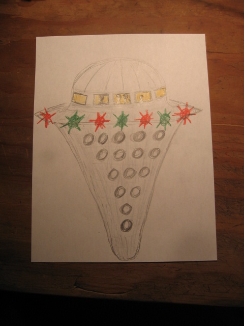 A drawing of the UFO I saw in 1989 through the walls of my friend Jeff’s house in McKenna, Washington.